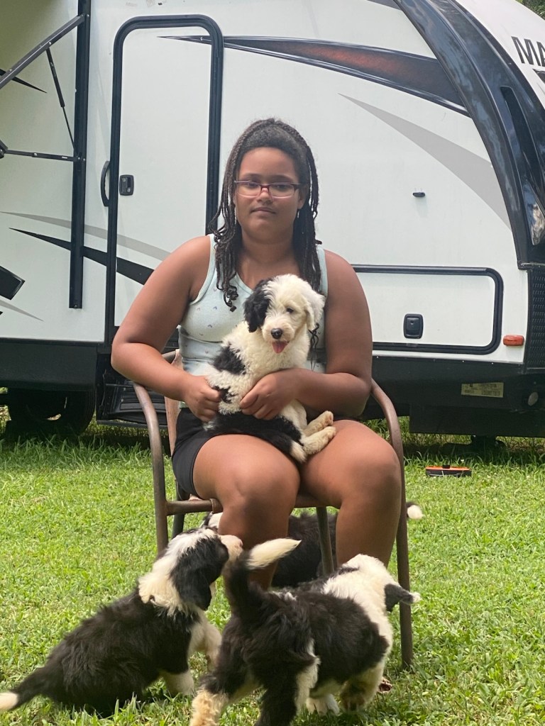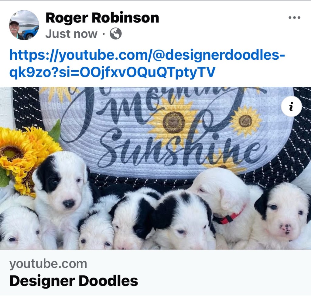 I’m a retired union carpenter enjoy biking hiking and being on the water I raised Sheepadoodle Puppies for my retirement hobby. They are family pets socialised by my grandkids and the rest of the family.love my Sheepadoodles.